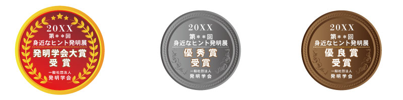 「身近なヒント発明展」の「発明学会大賞」「優秀賞」「優良賞」までの、上位賞16名には、受賞マークの使用権が授与されます。