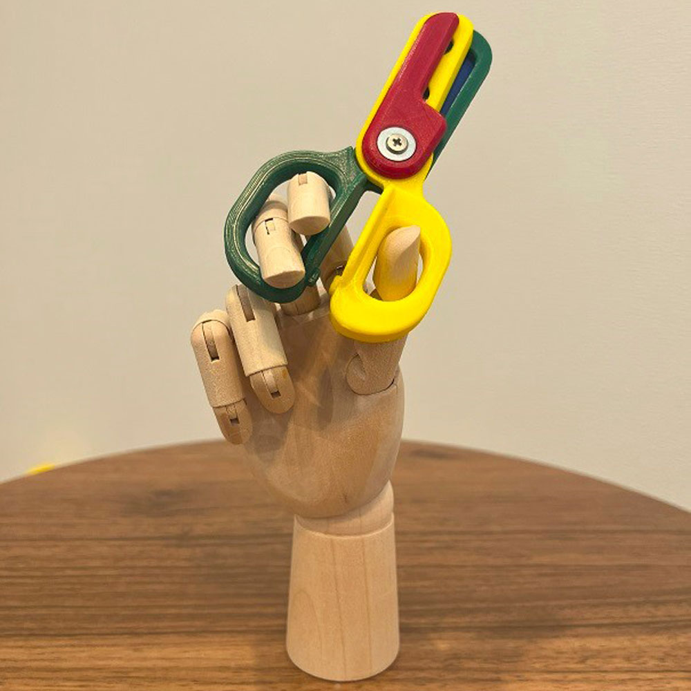 U字型ブレードで指を挟んでも切れない構造と、押しバネで常に閉じた状態を保つ仕組みで、安全性と正しい使い方を実現したハサミです。