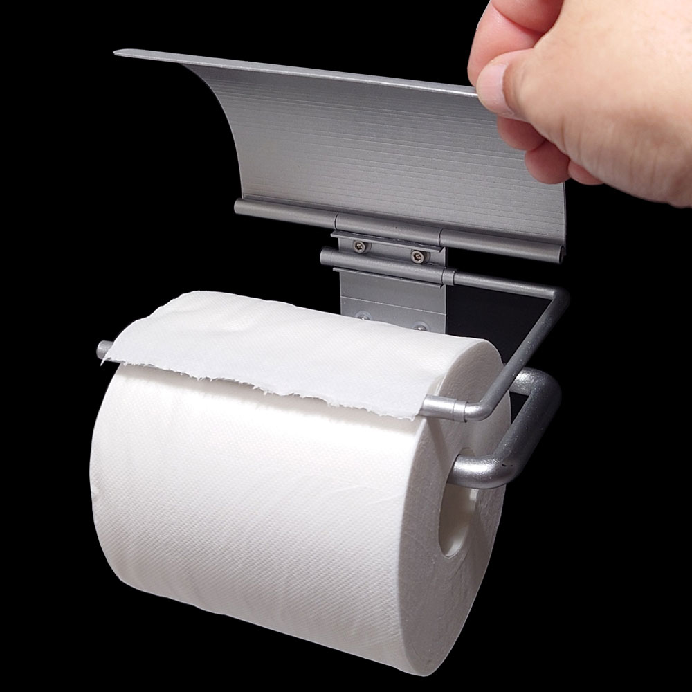 トイレットペーパーホルダーのカバー下にコの字型のバーを設置。ペーパー端部をバーに乗せることで、端を簡単に摘むことが可能。