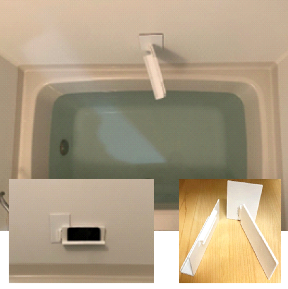 角度調整可能なヒンジと磁石を組み合わせた多用途スタンド。浴室だけでなくキッチンや寝室でも使え、壁に貼れて高さ調整がしやすい独自構造が特徴です。