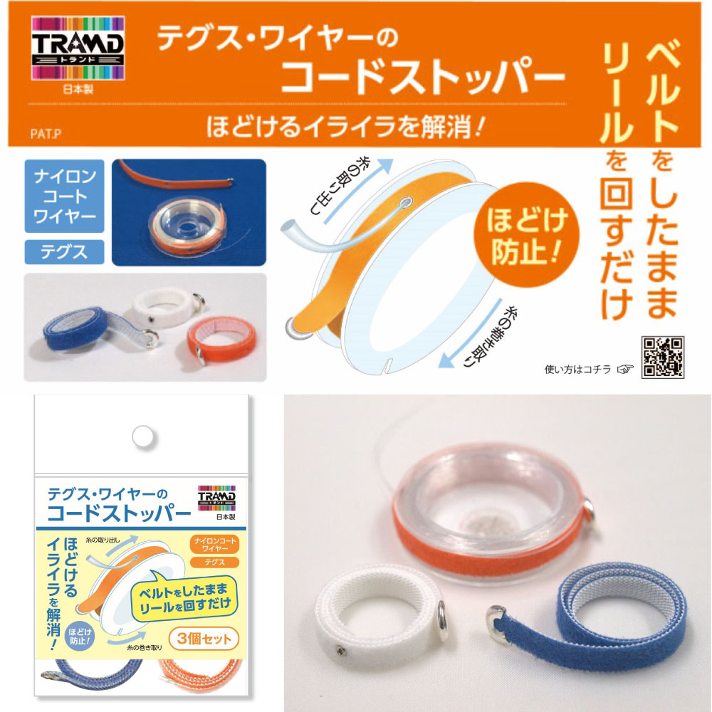 「コードストッパー」は、テグスや細いワイヤーなど反発力のある糸の端がリールからほどけるのを防ぎ、次に使うときに糸端が見つけやすくなるリール用ベルトです。