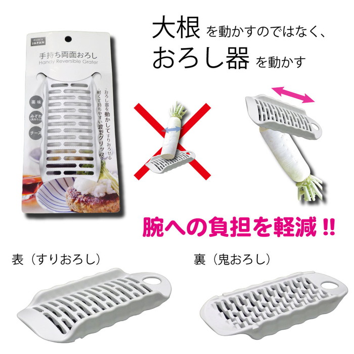 例えばこれで大根を削ると、ノコギリ刃で縦にたくさんの筋目を入れながら、さらにピーラーの刃で薄く削る仕組みです。