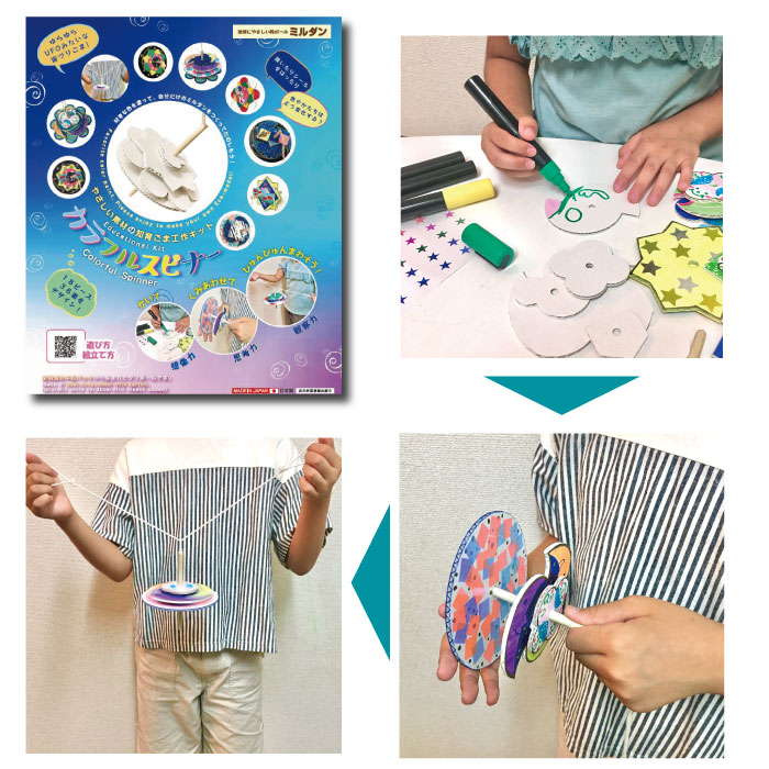 コマの柄を回しながら見ることができるため、描く色や図柄によって変化して楽しめます。