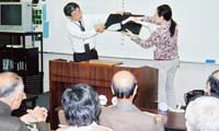 全国に約50数箇所ある「各地発明研究会」では、アイデアの研鑚を行なう「発明学校」を月1回開催しています。開催内容は各地域に独自性がありますが、参加者が考案したアイデアの発表や、情報交換を行っています。