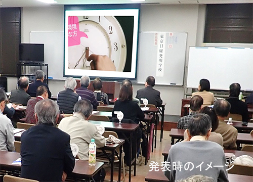 当日の東京発明学校の企業講演の時間は、本年度の応募作品の中の、上位16作品+こども発明部門特別賞の受賞作品10作品の表彰式を行います。