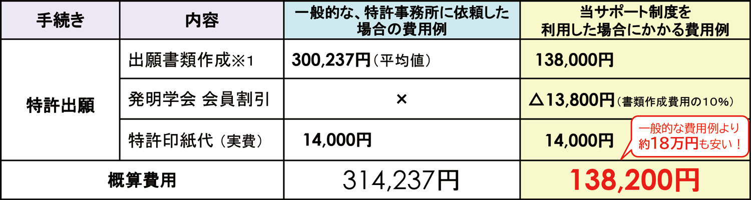 特許出願などの、特許庁への各種手続きを、格安の費用でサポートする、発明学会 会員限定のサポートメニューです。