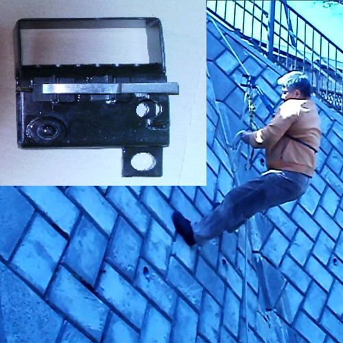 今回実験をしたのは70度の急勾配を昇登器1つで急勾配の崖を登りました。たぶん2日後 に強烈な筋肉痛に襲われるだろうと思います、休み休みで今後は昇登器1つ使いと昇登 器2つ使ってのロープ垂直登坂方法を確立していきたいと思います。 | ||