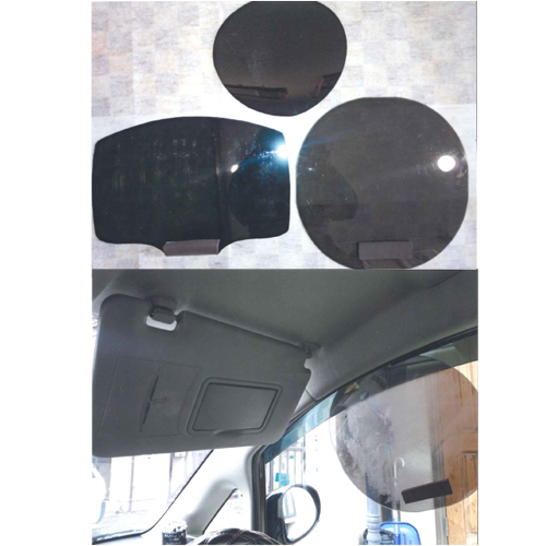 運転時の流動的な日差しをスポット的に遮り、尚且つ簡易的に取付け、取外しが可能でコンパクトサイズなので収納も容易。又、人気キャラクターや企業広告媒体としても使えます。半透明素材にし、UVカットフィルムを用いれば、紫外線対策グッズにもなります。 | ||